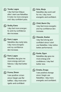 “I actually ordered Nakamax for my husband. Within one week, his energy improved so much. He wakes up early now, full of life. I’m impressed!”